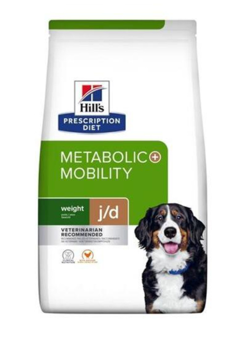 Hill's PRESCRIPTION DIET Metabolic + Mobility Dog Food with Chicken je kompletné dietetické krmivo na zníženie nadmernej telesnej hmotnosti a podporu metabolizmu kĺbov v prípadoch osteoartrózy u dospelých psov. Toto krmivo má nízku energetickú hustotu a vysoký obsah EPA, celkové omega-3 mastné kyseliny a primeraný obsah vitamínu E.
