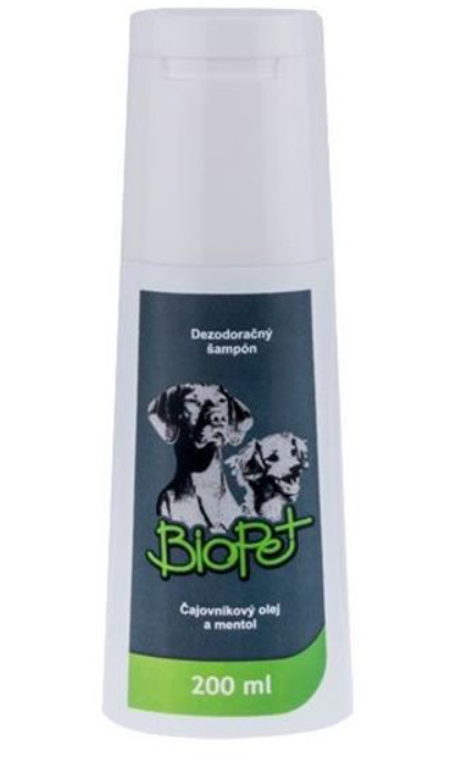 BIOPET dezodoračný šampón pre psy s čajovníkovým olejom a mentolom.