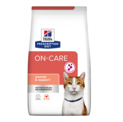 Hill’s PRESCRIPTION DIET ON-Care krmivo pre mačky s kuraťom je kompletné dietetické krmivo pre dospelé mačky určené k doplneniu živín, optimalizácii nutričného stavu a rekonvalescencii. Toto krmivo má vysokú koncentráciu energie, vysokú koncentráciu základných živín a vysoko stráviteľné komponenty.