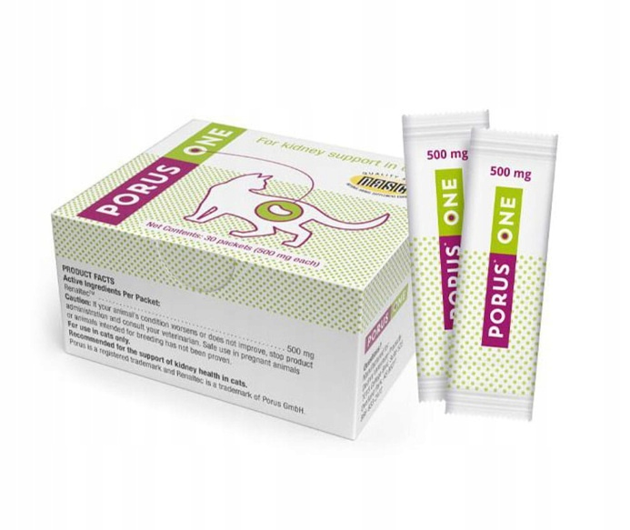 Porus® One pomáha viazať vedľajšie produkty bielkovín v črevách, následne sú vylučované stolicou. V dôsledku tohto procesu nemôžu byť vedľajšie produkty premenené na toxíny močoviny. Znížená produkcia močových toxínov nezaťažuje ľadviny, zlepšuje ich funkciu a zlepšuje kvalitu života zvieraťa.